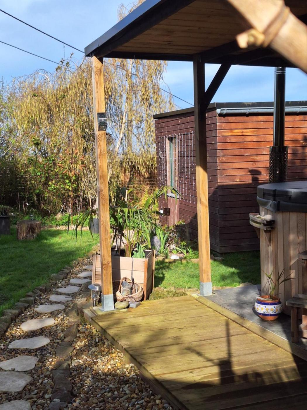 One-Bedroom House. This holiday homes special features are the hot tub and the sauna. Boasting a private entrance, this air-conditioned holiday home features 1 living room, 1 separate bedroom and 1 bathroom with a shower and a hairdryer. Guests will find a refrigerator, kitchenware, a microwave and a tea and coffee maker in the well-fitted kitchen. The holiday home also comes with a barbecue. The unit has soundproof walls, garden views, a terrace and winechampagne is available for guests. The unit has 1 bed.
