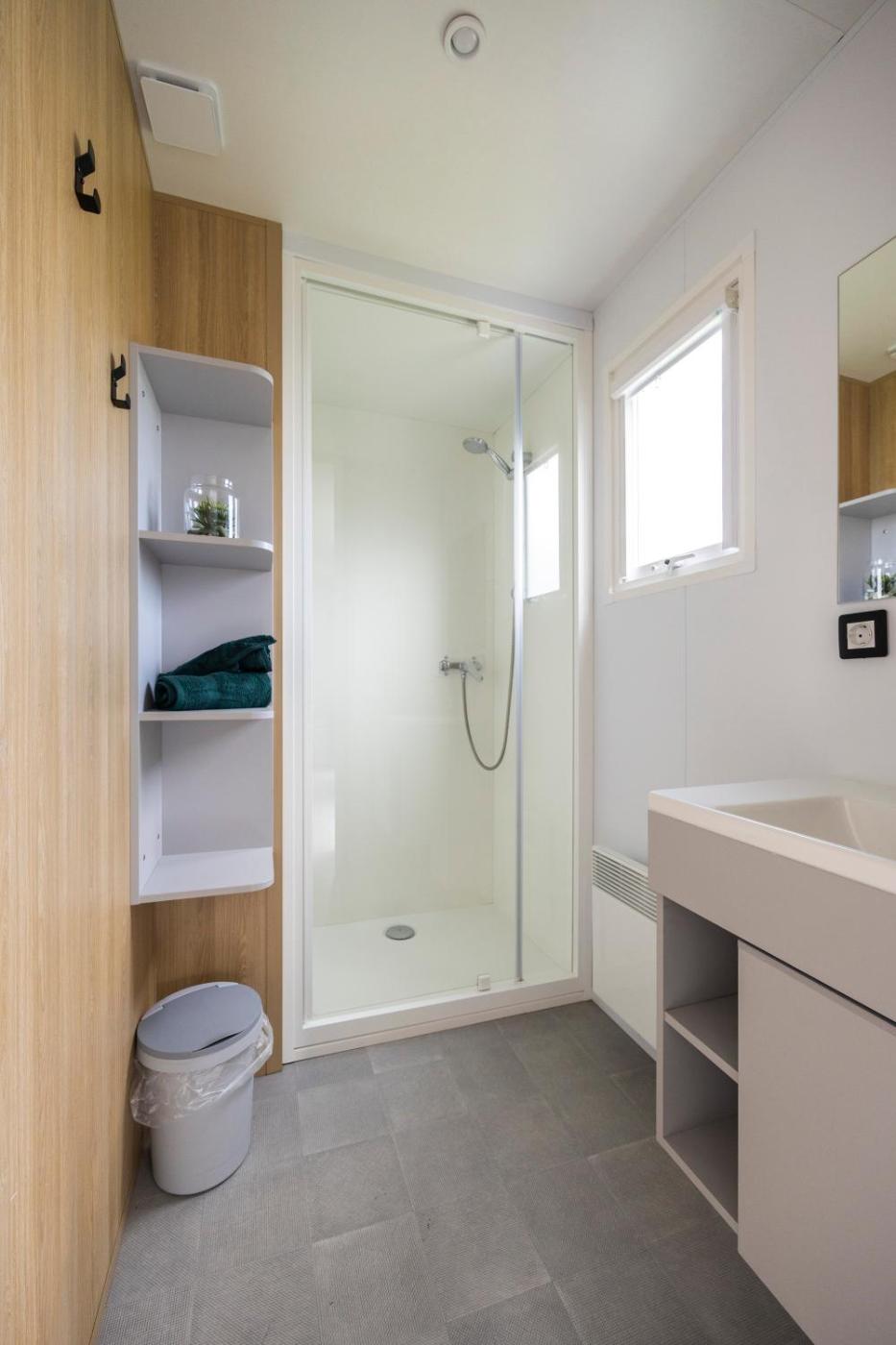 Mobile Home. Boasting a private entrance, this mobile home also includes 1 living room, 3 separate bedrooms and 1 bathroom with a shower. In the well-equipped kitchen, guests will find a stovetop, a refrigerator, a dishwasher and kitchenware. Featuring a terrace, this mobile home also offers a coffee machine, a seating area and a TV with cable channels. The unit has 5 beds. ;
