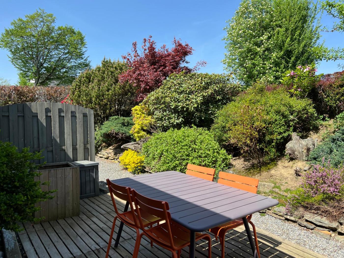 The holiday home with a terrace and garden views features 1 bedroom, a living room, a flat-screen TV, an equipped kitchen with a dishwasher and an oven, and 1 bathroom with a walk-in shower. Guests can take in the ambience of the surroundings from an outdoor dining area. For added privacy, the accommodation features a private entrance.