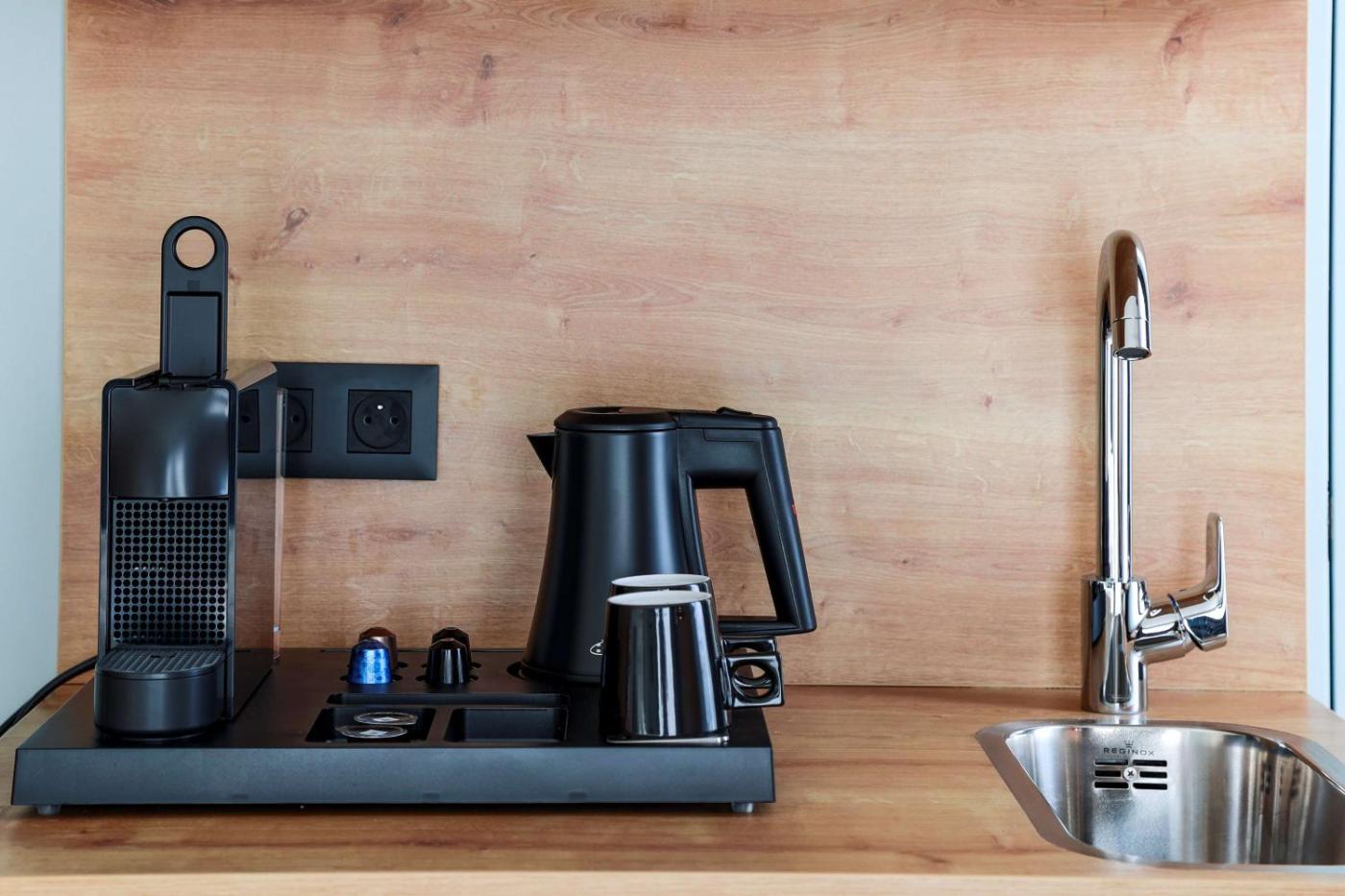 Superior Room with Kitchenette. Featuring free toiletries, this double room includes a private bathroom with a shower and a hairdryer. The double room features air conditioning, soundproof walls, a tea and coffee maker, a safe deposit box, as well as a flat-screen TV with cable channels. ;