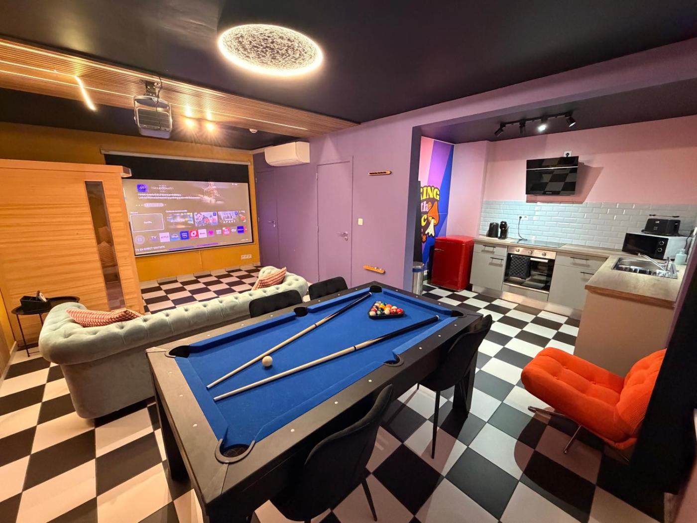 Two-Bedroom Apartment. This apartments special features are the hot tub and the sauna. Featuring a private entrance, this spacious apartment also consists of 1 bedroom, a seating area and 1 bathroom with a walk-in shower and a hairdryer. The fully equipped kitchen has a stovetop, a refrigerator, kitchenware and an oven. This apartment is air-conditioned and features a flat-screen TV with streaming services, soundproof walls, a tea and coffee maker and a game console. The unit offers 1 bed.